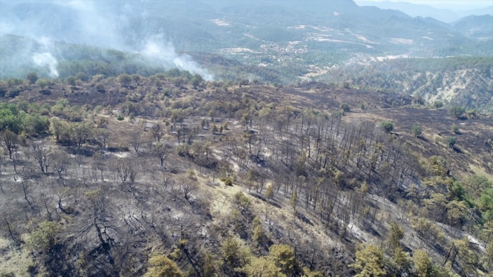 Aydın'daki orman yangınında yanan alanlar görüntülendi.