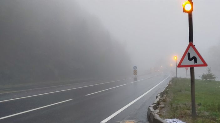 D-100 kara yolunun Bolu Dağı kesiminde sağanak ve sis, görüş mesafesini azalttı. Polis ve kara yolları ekipleri, sürücüleri hız sınırına uymaları ve takip mesafesini korumaları yönünde uyardı.