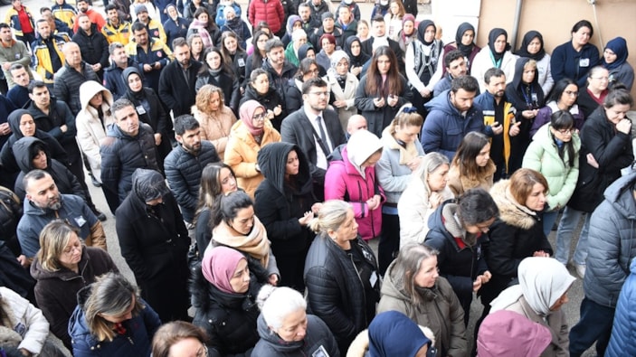 Gültekin'in naaşı, yakınları, mesai arkadaşları ve hastane çalışanlarından helallik istenmesinin ardından cenaze namazının kılınacağı Kalıcı Konutlar Camisi'ne götürüldü.