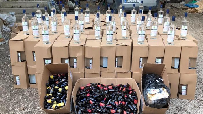 Bolu Valiliği'nden alınan bilgiye göre, il genelinde gerçekleştirilen arama faaliyetlerinde 1 büfede 1 litrelik şişeler halinde 1110 litre etil alkol, ayrıca aynı büfede 1228 adet içki aroması ele geçirildi.