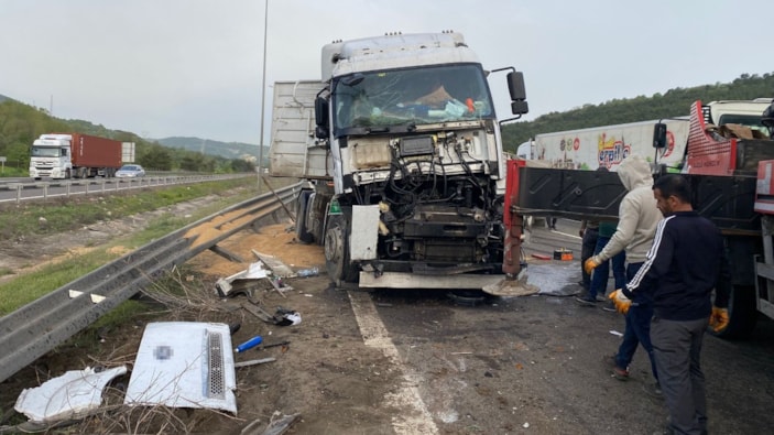 Bolu'da TEM Otoyolu’nda, sabah saatlerinde yaşanan kazada, sürücüsünün uyuduğu iddia edilen buğday yüklü tır kontrolden çıkarak bariyerlere çarptı.