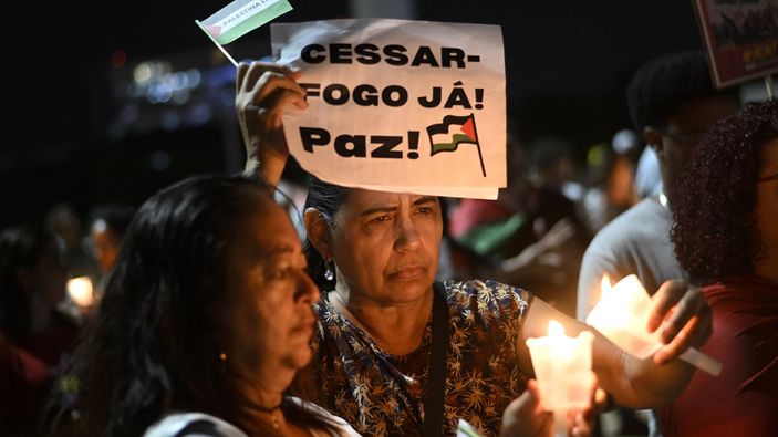 Bu tepkilerden birisi ise Brezilya'dan geldi. Sao Paulo kentinde bir araya gelen onlarca kişi, Gazze'de devam eden İsrail saldırılarına tepki gösterdi.
