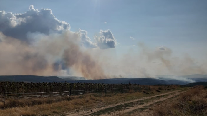 Yangının devam ettiği bölgeye en yakın köylerden olan Suakacağı, Yolüstü, Büyükismailçe ve sınır köylerden de görülüyor.