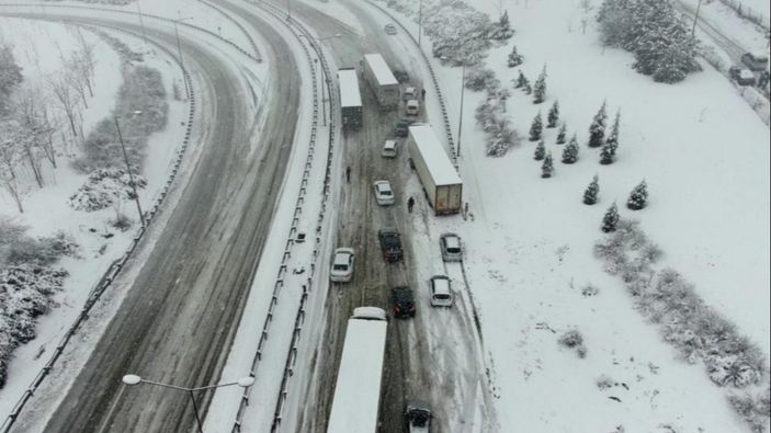 Bursa-İzmir otobanı bağlantı noktası yoğun kar yağışı ve buzlanma sebebiyle trafiğe kapandı.