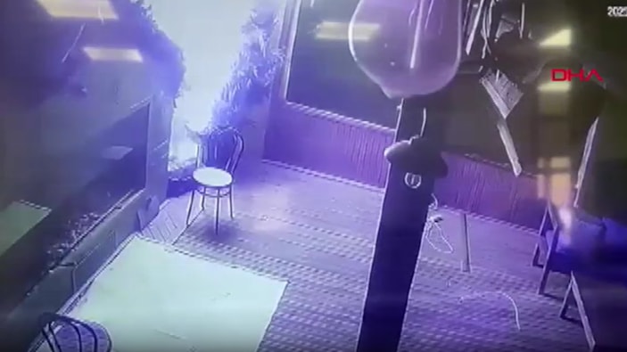 İki kişinin hayatını kaybettiği yangının başlama anı güvenlik kameralarına yansıdı..