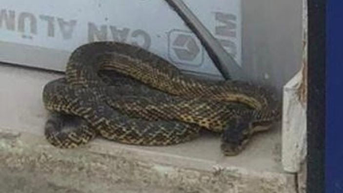 İŞ YERİNİN ÖNÜNDE 2 METRELİK YILAN BULDU