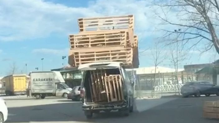 Kapalı kasa panelvanın üzerinde taşınan ahşap mobilya iskeletlerinin sallanması tehlike saçtı.