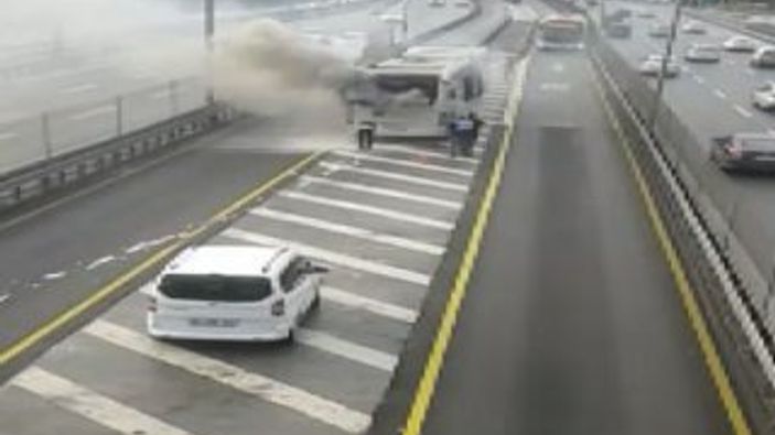İstanbul'da Zincirlikuyu-Beylikdüzü seferini yapan metrobüs sürücüsü, Çağlayan durağından hareket ettiği sırada, aracın motor kısmından dumanlar çıktığını gördü.