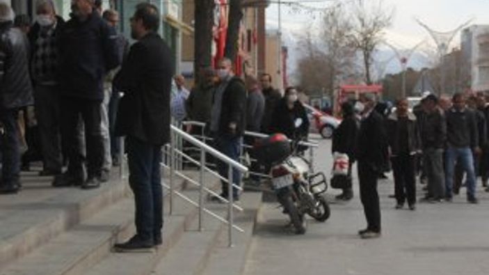 Koronavirüse karşı alınan tedbirler kapsamında, çalışma saatleri 5 saate indirilen bankaların önünde kuyruklar oluştu.