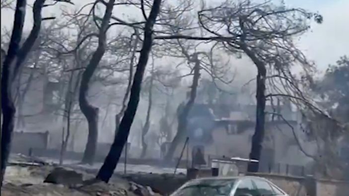 Bölgeden gelen görüntülerde ise birçok ev ve arabanın ise küle döndüğü kaydedildi.