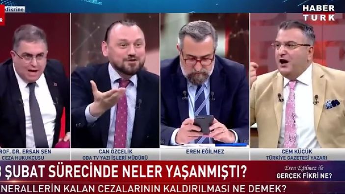 Habertürk canlı yayınına katılan konuklardan Gazeteci Cem Küçük, 28 Şubat'ın darbe olduğunu söyledi. Karşısındaki isimler ise buna karşı çıktı.