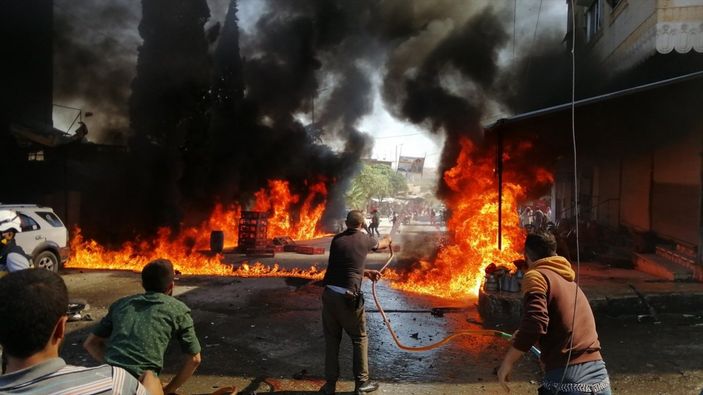 Suriye'nin Halep kentinde bulunan Cerablus ilçesinde, iki ayrı noktada eş zamanlı bombalı saldırı düzenlendi.