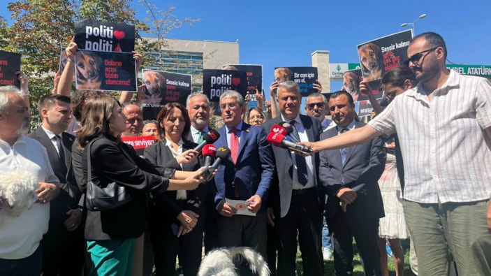 CHP'den milletvekillerinin katıldığı heyet, AYM'nin önünde sürece ilişkin basın açıklaması yaptı. Hayvan hakları savunucuları da CHP'nin basın açıklamasına katıldı.