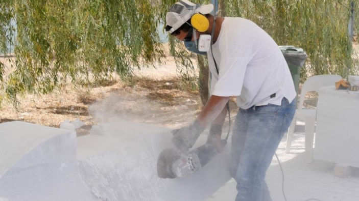 Mermer bloklar üzerinde figürlerini yontmaya başlayan heykeltıraşların eserleri, 1 Ağustos Perşembe günü Kültürpark Dalyan Kafe yanında sergilenecek.