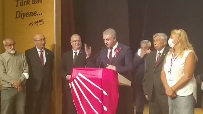 Teşekkür konuşması için kürsüye gelen CHP'li ilçe başkanı, Cumhurbaşkanı Recep Tayyip Erdoğan'a ve AK Parti seçmenine yönelik küstah ifadeler kullandı.