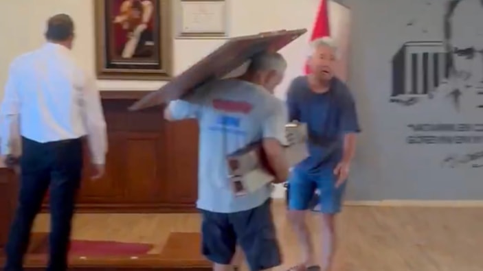 SGK borçları nedeniyle haczedilen Tarsus Belediyesi'nde, Başkan Ali Boltaç'ın makam odasının boşaltıldığı anlarda kameralar kayıttaydı.