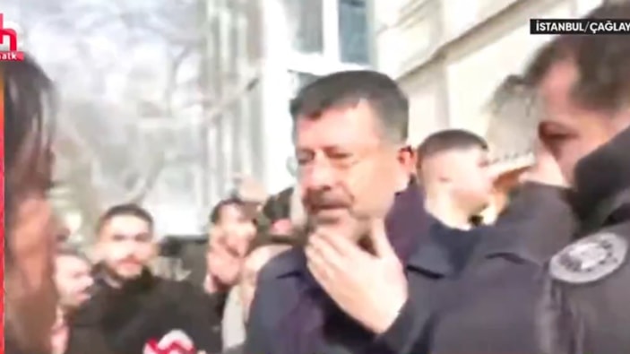 Adliyede ifade veren Ekrem İmamoğlu'na destek için Çağlayan'da toplanan partililer arasında yer alan CHP'li vekil Veli Ağbaba, Halk TV muhabirini görünce biber gazından etkilenmiş gibi yaparak öksürmeye başladı.