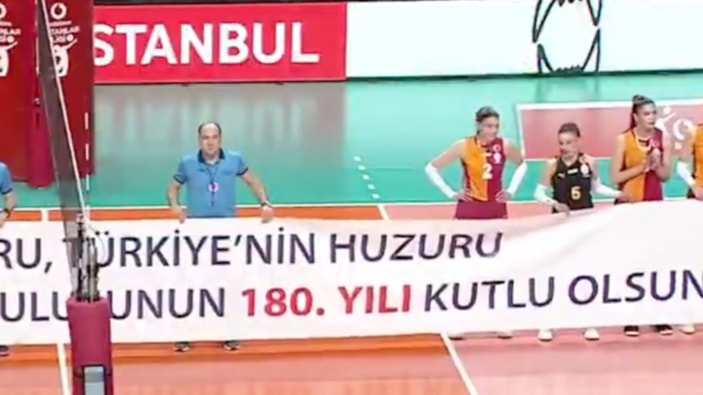 İstiklal Marşı'nın okunduğu seremonide Galatasaray'ın oyuncusu İlkin Aydın'ın pankartı tutmaması dikkat çekti.