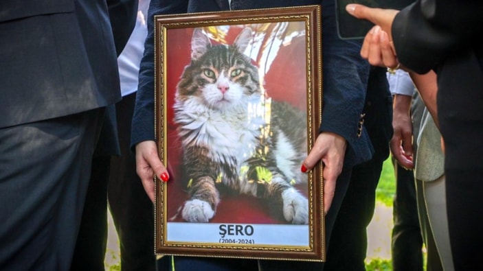 CHP'nin kedisi 'Şero', parti genel merkezinin bahçesinde defnedildi. Define CHP Genel Başkanı Özgür Özel katılırken, 'Şero'nun doğum ve ölüm yılı yazılı çerçeveli fotoğrafı da taşındı.