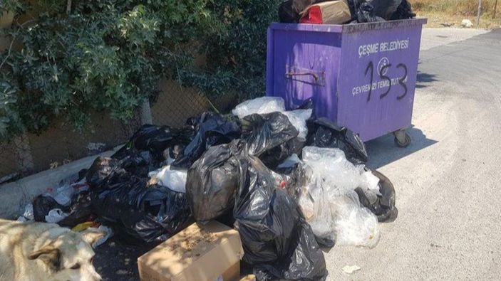 İzmir'in önemli tatil bölgelerinden Çeşme'de belediye tarafından toplanmayan çöpler, görenleri isyan ettirdi.