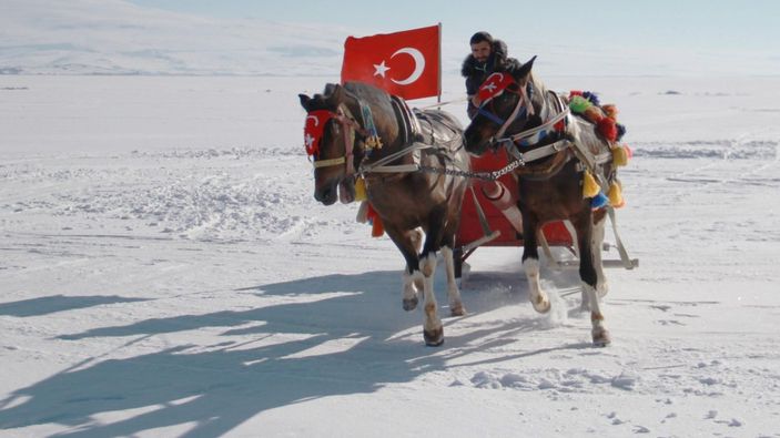 Zaman zaman adrenalini seven müşterileri ya da tek olduğunda bu zorlu hareketi şov amaçlı yaptığını belirten Karataş, "Yazın hayvancılık kışın da 4 yıldır atlı kızakçılık yapıyorum. 8 tane atım var. Yaz kış demeden atlarıma özel olarak bakarım. Pandemi nedeniyle geçen yıllara oranla bu yıl biraz canlılık var. Bölgeye gelen turistlere hizmet ederek yöremize ve ülkemize katkı sağlamış oluyoruz. Ben ilk olarak Çıldır Gölü buz festivalinde at yarışlarına katılmıştım. Daha sonra hobi olarak başladığım atlı kızakçılığı meslek edindim. Atlarımı dört nala sürüp ani dönüş yapınca drift atan otomobiller gibi oluyor. Buna atlarım da alıştı. Misafirlerin de hoşuna gidiyor, isteyen olursa da atlı kızakta onlara drift heyecanını yaşatıyorum" diye konuştu.