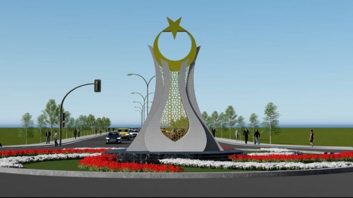 Çorum'da Çevreyolu Binevler Kavşağına ay yıldız totemi
