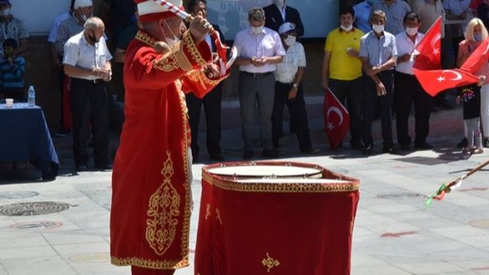Fetih Marşı ile başlayan etkinlikte vatandaşlar, Türk bayraklarıyla mehter takımının seslendirdiği parçalara eşlik ederken, misafirlere Osmanlı şerbeti ikram edildi.