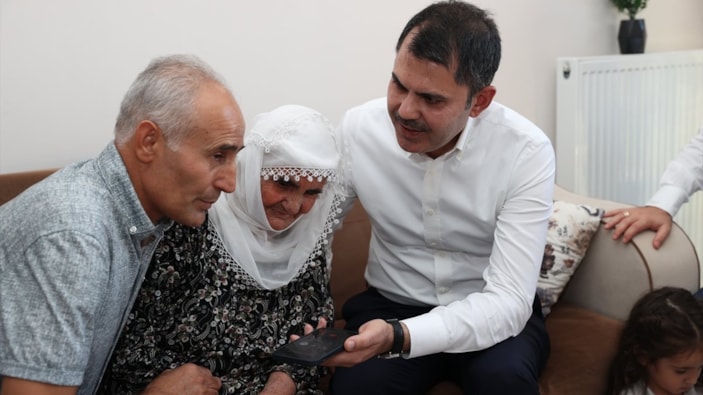 Bakan Kurum, 78 yaşındaki Adıyamanlı depremzede Zeliha Yıldırım'ı Cumhurbaşkanı Recep Tayyip Erdoğan ile telefon aracılığı ile görüştürdü.