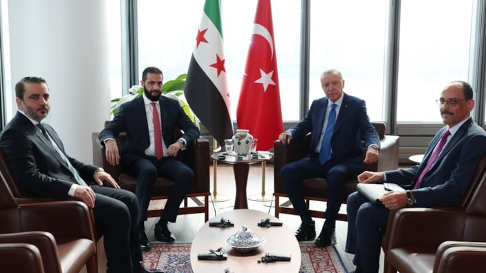 Cumhurbaşkanı Recep Tayyip Erdoğan, Birleşmiş Milletler (BM) 80. Genel Kurulu dolayısıyla bulunduğu New York'taki Türkevi'nde Suriye Cumhurbaşkanı Ahmed Şara'yı kabul etti.