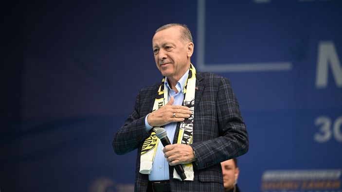 Erdoğan, miting için alanı dolduran yoğun kalabalığa hitap etti. Cumhurbaşkanı, muhalefetin seçim afişlerini ve CHP'li belediyeleri eleştirdi, raylı sistemlerle ilgili imza atılan işlere dikkati çekti.