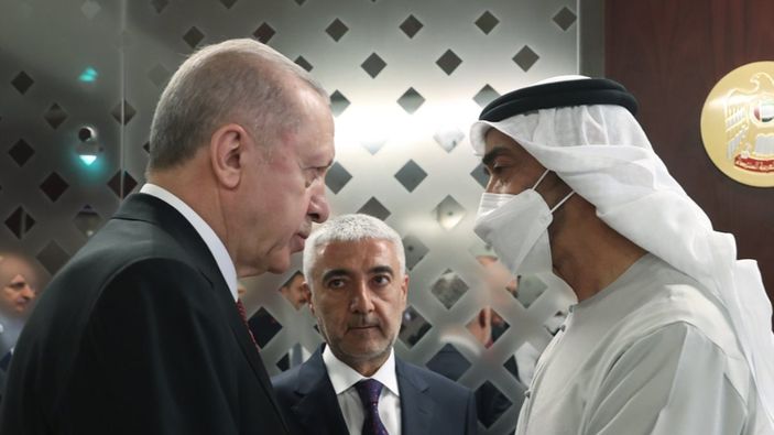 Erdoğan, havalimanında bir araya geldiği Nahyan'a, eski Devlet Başkanı Şeyh Halife bin Zayid Al Nahyan'ın geçen hafta hayatını kaybetmesinden dolayı taziyelerini iletti.
