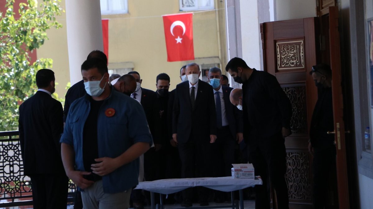Mersin İl Müftüsü Şaban Kondi'nin kıldırdığı Cuma namazı sonrası cemaate seslenen Erdoğan, "Siz değerli kardeşlerimden istirhamım şu olacak. Emir Sultan Camisi'nde elhamdülillah bir olalım, beraber olalım, iri olalım, diri olalım, kardeşliğimizi asla lekelemeyelim. Kardeşliğimize gölge asla düşürmeyelim. Bölmek isteyenlere fırsat vermeyelim. Ne kadar bu noktada bir olup beraber olursak rabbim gücümüzü o kadar arttıracaktır. Bu vesileyle ben de tüm geçmişlerimize Allah'tan rahmet diliyorum, şehitlerimize rahmet diliyorum. Rabbim bizleri şehitlerimizle birlikte sevgili Habibinin livâü'l-hamd ismiyle müsemma sancağı altında haşru cem eylesin." dedi.