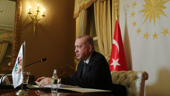 Cumhurbaşkanı Recep Tayyip Erdoğanü, G20 Zirvesi'ne video konferans yöntemiyle katıldı.