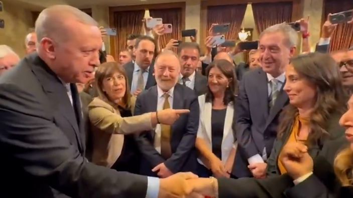 Cumhurbaşkanı Recep Tayyip Erdoğan, Meclis açılış konuşmasının ardından DEM Parti grubuna giderek el sıkışırken o anlarda DEM Parti heyeti ile Cumhurbaşkanı Erdoğan arasında geçen samimi diyaloglar gündem oldu.