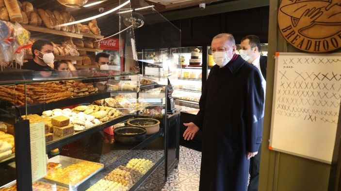 Cumhurbaşkanı Erdoğan, İstanbul'da bir fırında hijyen kurallarını kontrol ettikten sonra ekmek ve simit satın aldı.
