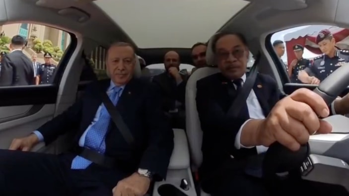Malezya Başbakanı İbrahim, Cumhurbaşkanı Erdoğan'ın kendisine hediye ettiği TOGG'u ilk kez kullandığı anları paylaştı. Sürücü koltuğunda Malezya Başbakanı'nın, sağ koltukta ise Erdoğan'ın oturduğu görüntülerde İbrahim, "Benim sürüşüme güvendiğiniz için şaşırdım" dedi.