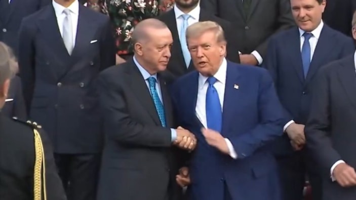 Hollanda Kraliyet Sarayı’ndaki NATO Liderler Yemeğine katılan Cumhurbaşkanı Recep Tayyip Erdoğan ile ABD Başkanı Donald Trump'ın aile fotoğrafında yan yana poz vermesi dikkat çekdi.