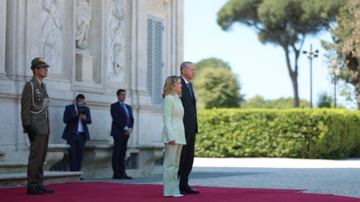 Türkiye-İtalya Hükümetlerarası Zirvesi'ne katılacak olan Erdoğan, İtalya Başbakanı Meloni tarafından resmi törenle karşılandı.