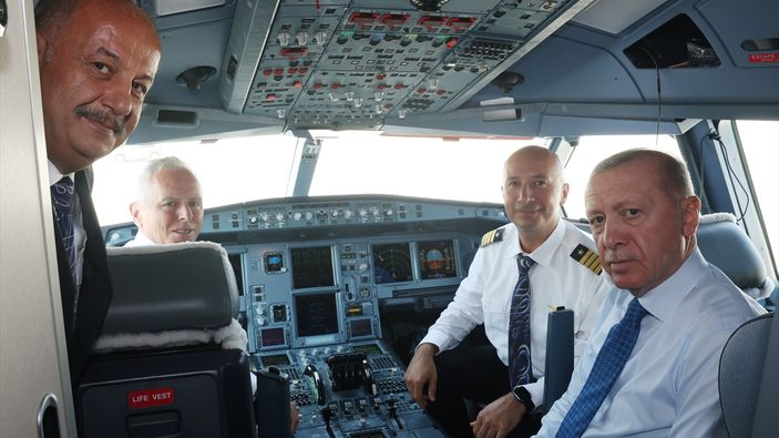 Çukurova Uluslararası Havalimanı'nı hizmete açan Cumhurbaşkanı Erdoğan, iniş yapan uçağın kokpitinde pilotlara eşlik etti.