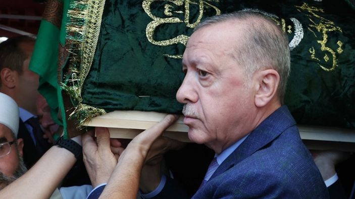 Cumhurbaşkanı Erdoğan, Mahmut Ustaosmanoğlu'nun tabutunu omuzladı