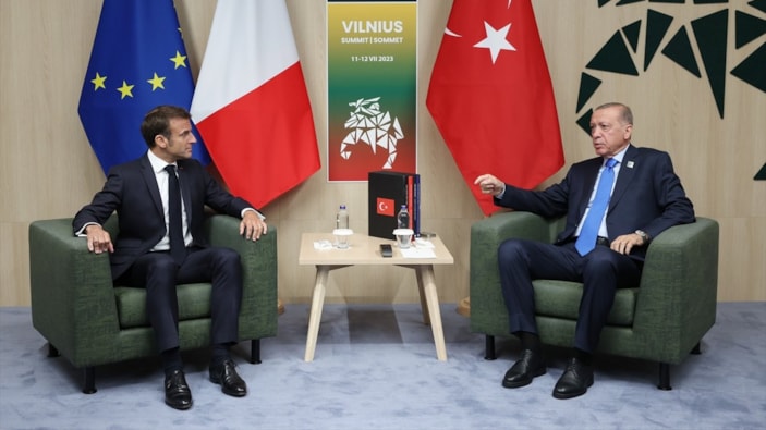 NATO Liderler Zirvesi kapsamında Cumhurbaşkanı Erdoğan, Fransız mevkidaşı Emmanuel Macron ile baş başa görüşmek için bir araya geldi.