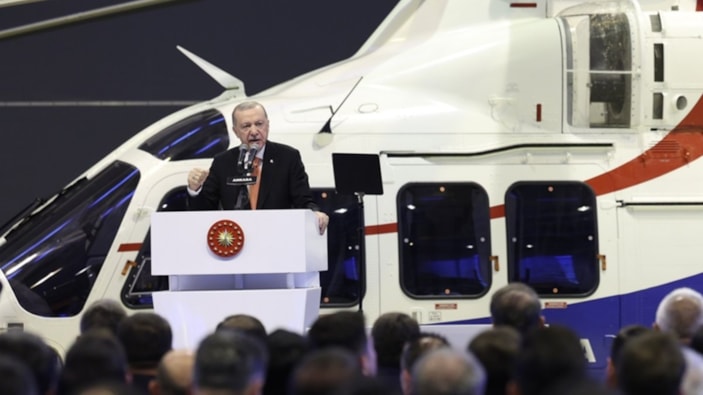 Cumhurbaşkanı Erdoğan, Türk Havacılık ve Uzay Sanayii Anonim Şirketi (TUSAŞ) Merkez Yerleşke'de T625 Gökbey Helikopteri Teslimat Töreni'nde konuştu.