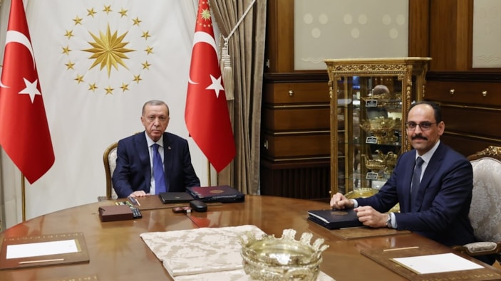 Milli İstihbarat Teşkilatı'nın yeni başkanı İbrahim Kalın, göreve geldikten sonra Cumhurbaşkanı Recep Tayyip Erdoğan'a ilk brifingini vermek üzere Cumhurbaşkanlığı Külliyesi'ne gitti.