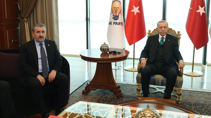 Cumhurbaşkanı Erdoğan ile görüşen BBP Genel Başkanı Mustafa Destici, tüm teşkilatları ile Cumhurbaşkanı Recep Tayyip Erdoğan'ın seçimi kazanması için çalışacaklarını söyledi.