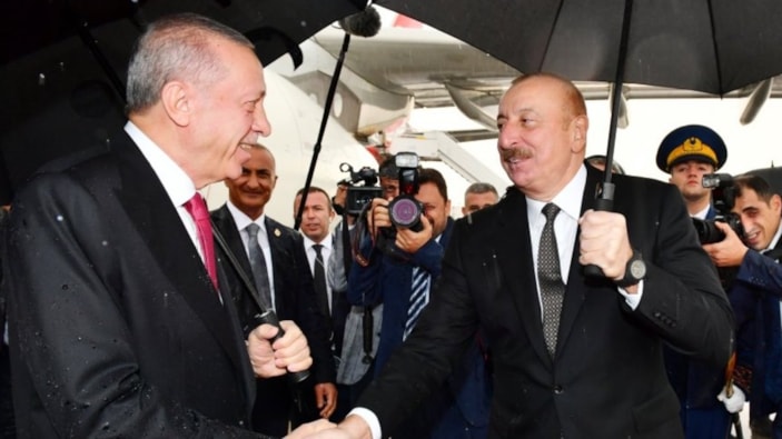 O anlarda Cumhurbaşkanı Erdoğan, Aliyev'e yağışlı havayı işaret ederek, "Kardeşim bizim oralar yanıyor senin buralar rahmet." dedi.