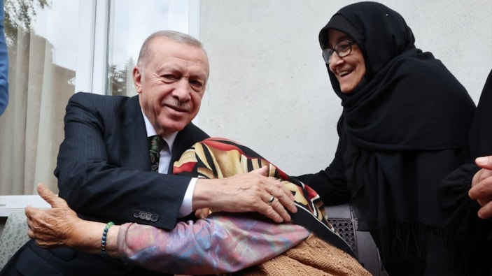 Dün toplu açılış törenine katılan ve burada da kısa bir konuşma yapan Cumhurbaşkanı Erdoğan, bugün komşularını ziyaret etti. Cumhurbaşkanı Erdoğan'ı karşılayan komşuları, sarılarak hasret giderdi.