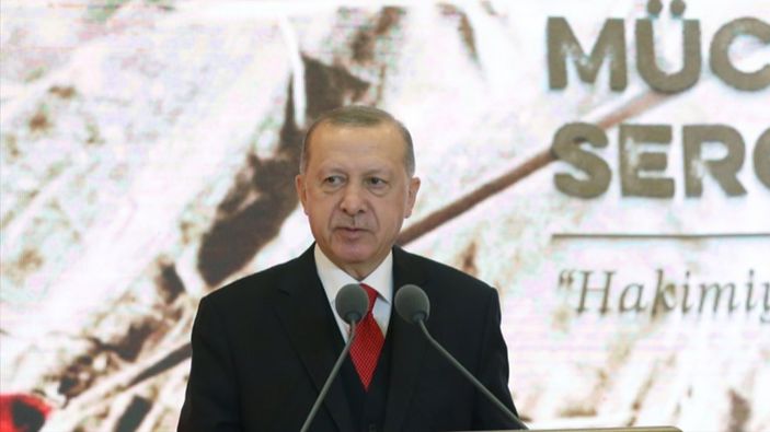 Tarihten bugüne Türkiye'nin bulunduğu topraklarda halkın her daim mücadele içerisinde olduğuna vurgu yapan Cumhurbaşkanı Erdoğan, "Yaşadıklarımız gösteriyor ki Türk milletinin istiklal mücadelesi, vatanına, bayrağına, ezanına sahip çıkmaya devam ettiği sürece bitmeyecek." dedi.