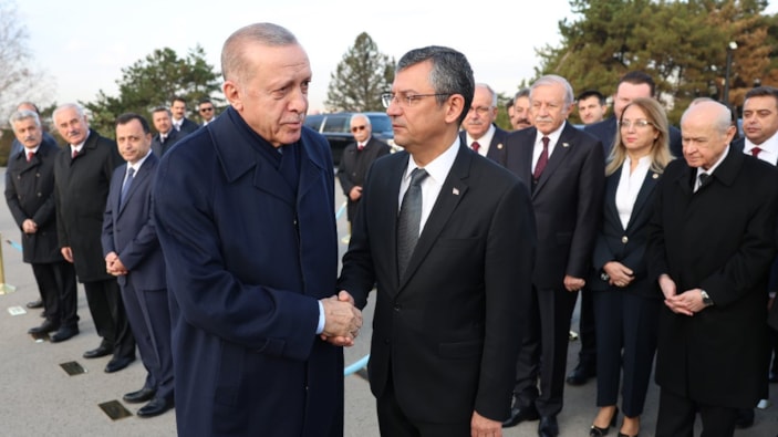 CHP Genel Başkanı Özgür Özel, Anıtkabir'de genel başkan sıfatıyla katıldığı ilk törende Cumhurbaşkanı Erdoğan ile tokalaşırken yüzündeki gerginlik dikkat çekti.