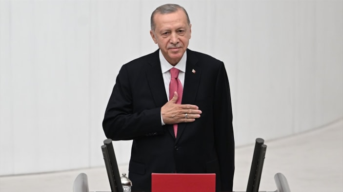 Muhalefet partisi milletvekillerinin ayağa kalkmadığı törende Erdoğan, dakikalarca alkışlandıktan sonra resmen görevine başladı.