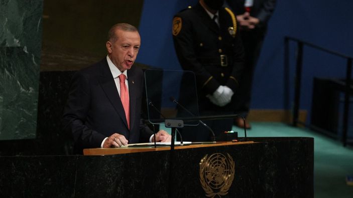 Cumhurbaşkanı Erdoğan, Birleşmiş Milletler 77. Genel Kurulu'nda dünya liderlerine seslendi. Erdoğan, "Yunanistan Ege'yi bir mülteci mezarlığına çevirmektedir" dedi.